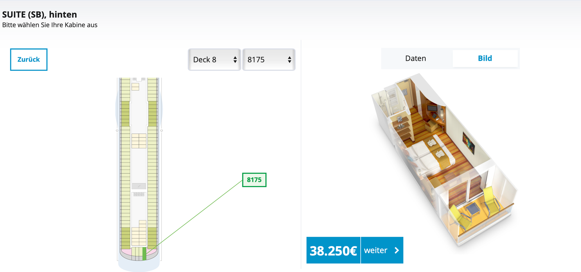 die Heck-Balkon-Kabine (jetzt BA) ist dann Suite SB.