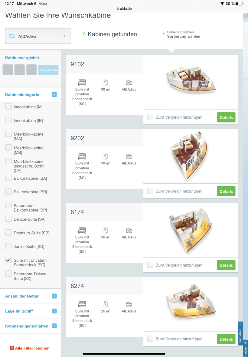 Aber aktuell sind doch keine BA-Heckkabinen mehr buchbar.