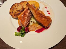 Dorade, Rinderfilet, Parmesansuppe, Ente und drei Nachtische.