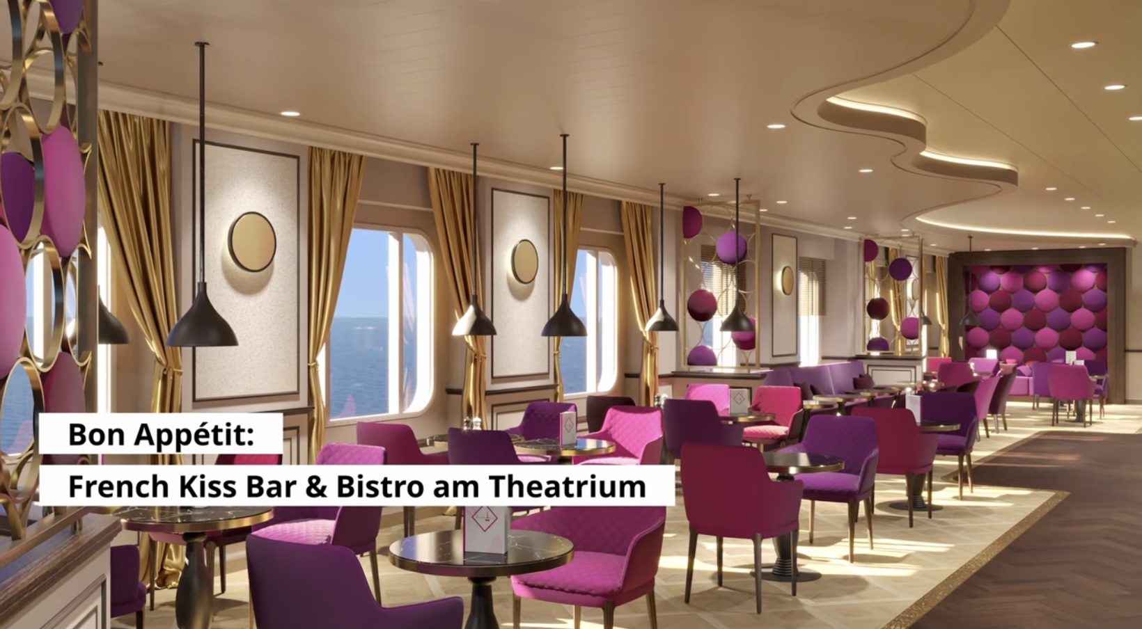 Ich bin sehr gespannt! Wenn man sich das Rendering vom French Kiss Restaurant ansieht, muss es ja fast am Heck sein. Wo gibt es sonst diese Rundungen an den Fenstern? Und die French Kiss Bar sah ja mehr nach Theatrium aus. Oder vertue ich mich so extrem?