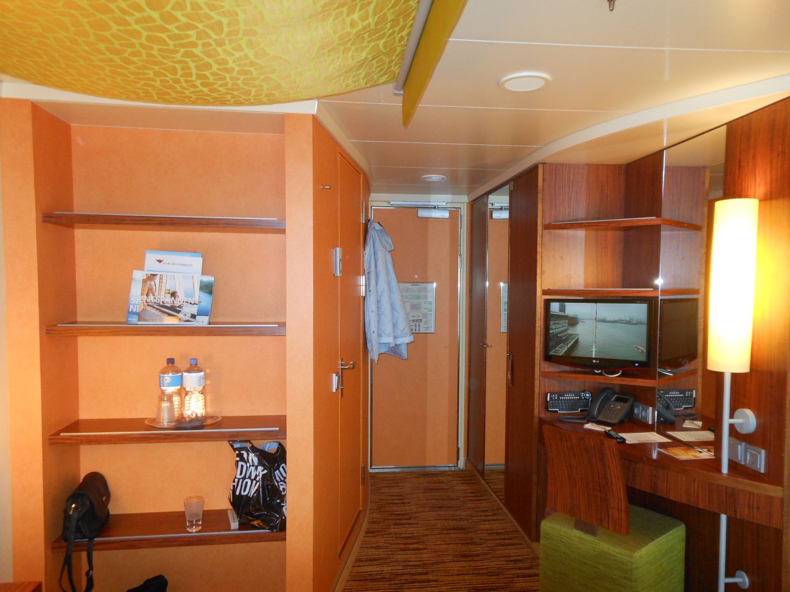 Leider ist beim Betrachten der neuen Kabinen-Optik die Evolution Vorfreude zum Teil einer gewissen Ernüchterung gewichen. Die Farbkombination der alten Bestandteile wie nussbaumfarbener Möbel etc. und gelb-curryfarbener Wandverkleidungen mit jetzt viel türkis und aqua-weißem Baldachin passt nun gar nicht. Man möchte sich auf den Kabinen wohl fühlen und dazu gehört eine gewisse Farbharmonie und das hat Aida normalerweise auch drauf.