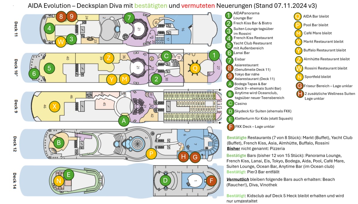 Soweit ich Kapitän Becker richtig verstanden habe werden zwei der drei Buffet-Restaurants umgestellt. EInmal als Jachtclub und einmal (ich nehme an analog zu den größeren Sphinx-Schiffen) eine aiatischen Restaurant. Beides wäre dann nicht zu reservieren.