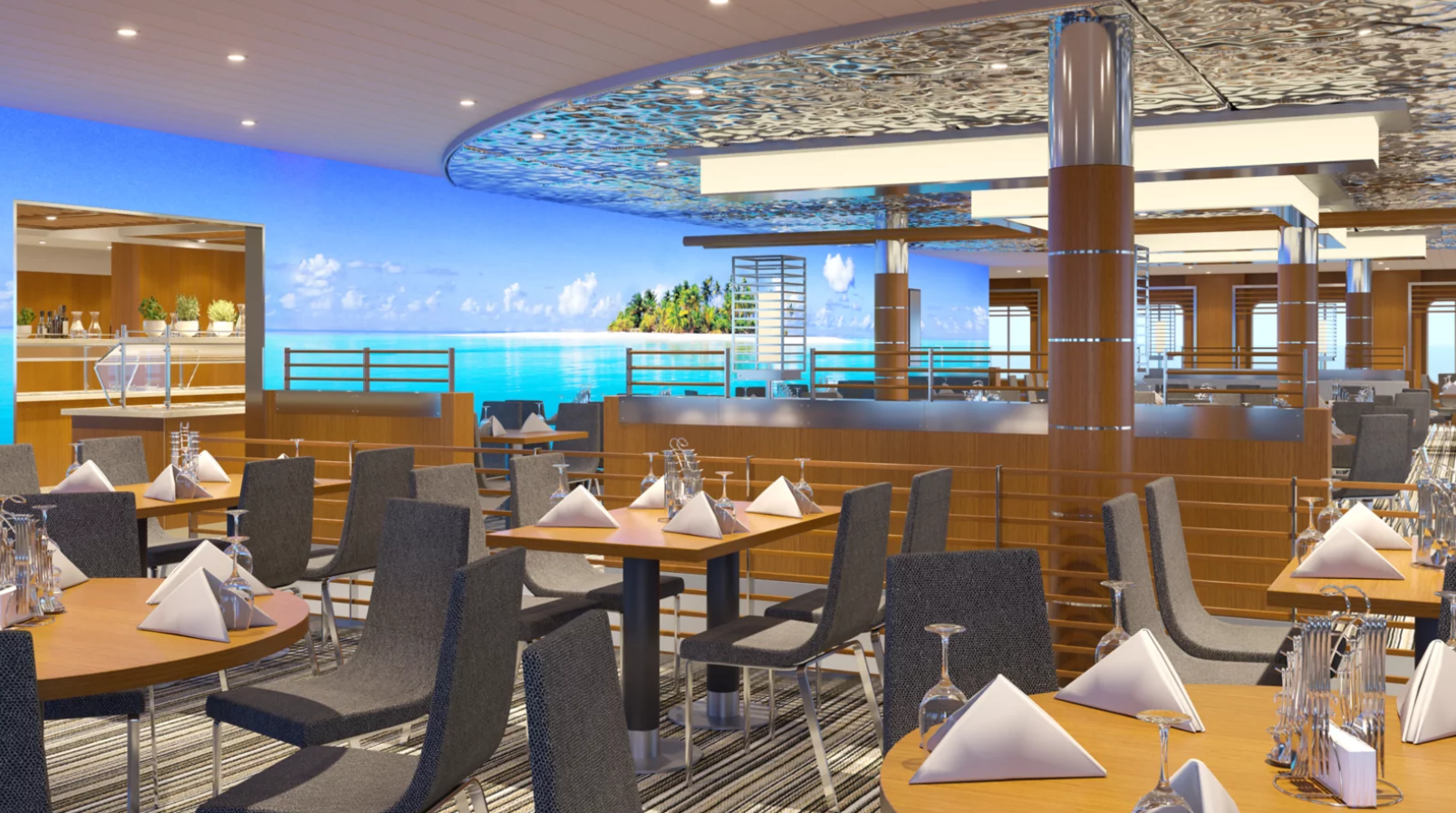 Buffet Gang Yachtclub (mit Video Wand rechts daneben):