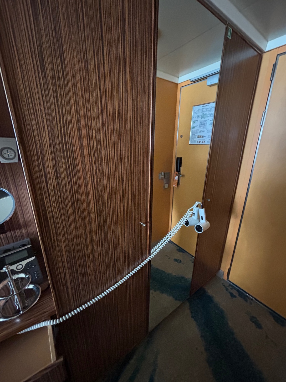 Aber in meiner Innenkabine auf der Perla gabs einen großen Spiegel inkl. Beleuchtung am „Föhntisch“. -