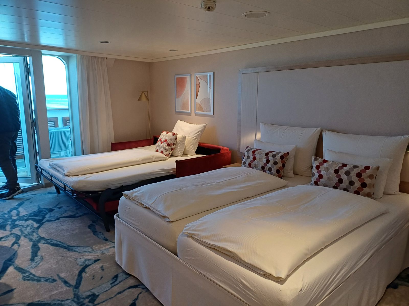 Auch wenn ich die Sphinx-Umbauten insgesamt durchaus gelungen finde, habe ich mich noch nicht zum Buchen für uns vier durchringen können. Auf eine Balkonkabine auf Deck 5 habe ich keine Lust und die neuen Vier-Bett-Kabine auf den höheren Decks wirken vom Stauraum her irgendwie arg begrenzt. So bin ich zwar auch sehr gespannt, wie es mit den Sphinx-II-Schiffen weitergeht, noch viel lieber würde ich aber einen Blick auf die Pläne für die neuen Schiffe werfen ...
