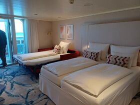 Auch wenn ich die Sphinx-Umbauten insgesamt durchaus gelungen finde, habe ich mich noch nicht zum Buchen für uns vier durchringen können. Auf eine Balkonkabine auf Deck 5 habe ich keine Lust und die neuen Vier-Bett-Kabine auf den höheren Decks wirken vom Stauraum her irgendwie arg begrenzt. So bin ich zwar auch sehr gespannt, wie es mit den Sphinx-II-Schiffen weitergeht, noch viel lieber würde ich aber einen Blick auf die Pläne für die neuen Schiffe werfen ...