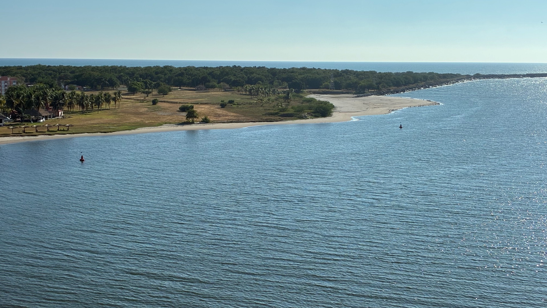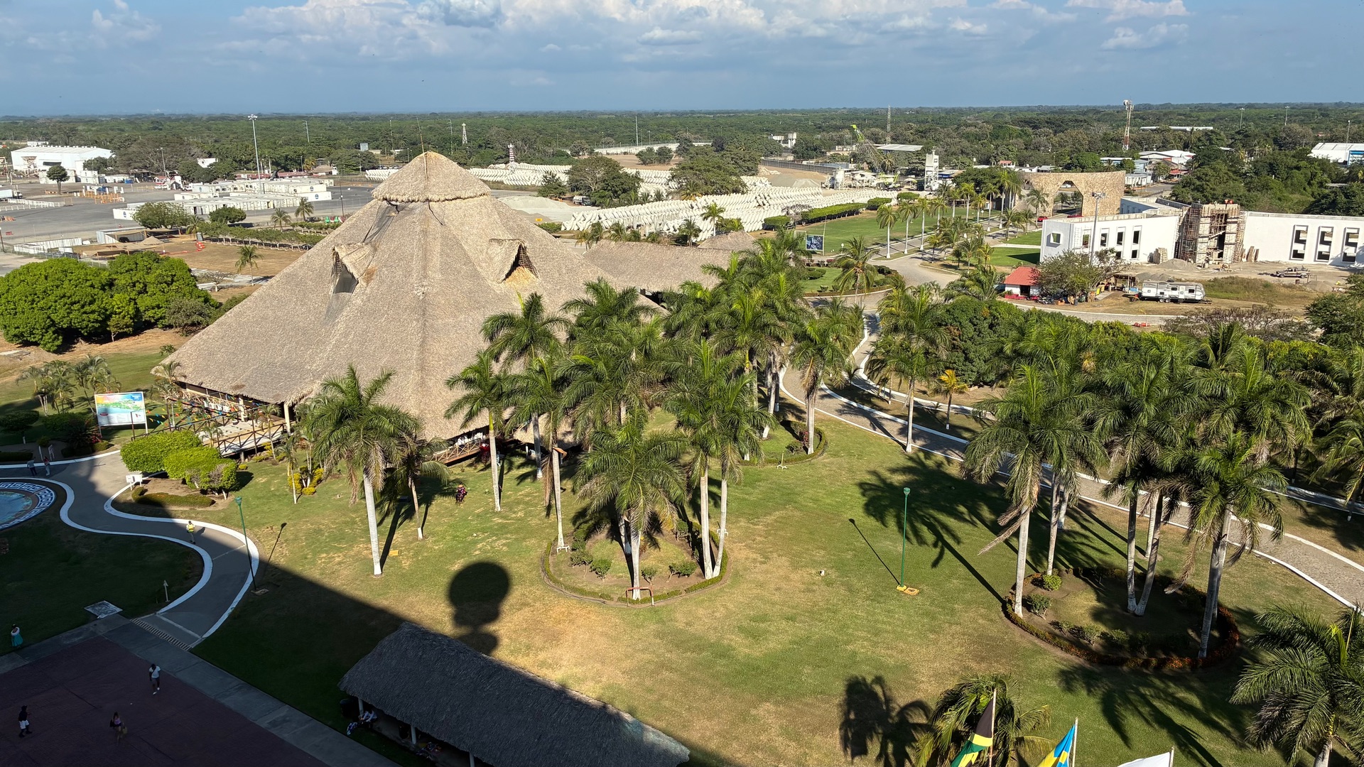 Was man aber lobenswert von Puerto Chiapas erwähnen muss ist das Kreuzfahrtterminal! Alles sehr schön, das Terminal selbst als Pyramide gebaut mit einem Palmendach. Anbei gibt es auch noch einen Pool hinter dem auch noch eine keine Pyramide Stand die beiden „Pyramidenbauten“ wurden auch einen gut gepflegt Palmengarten verbunden.