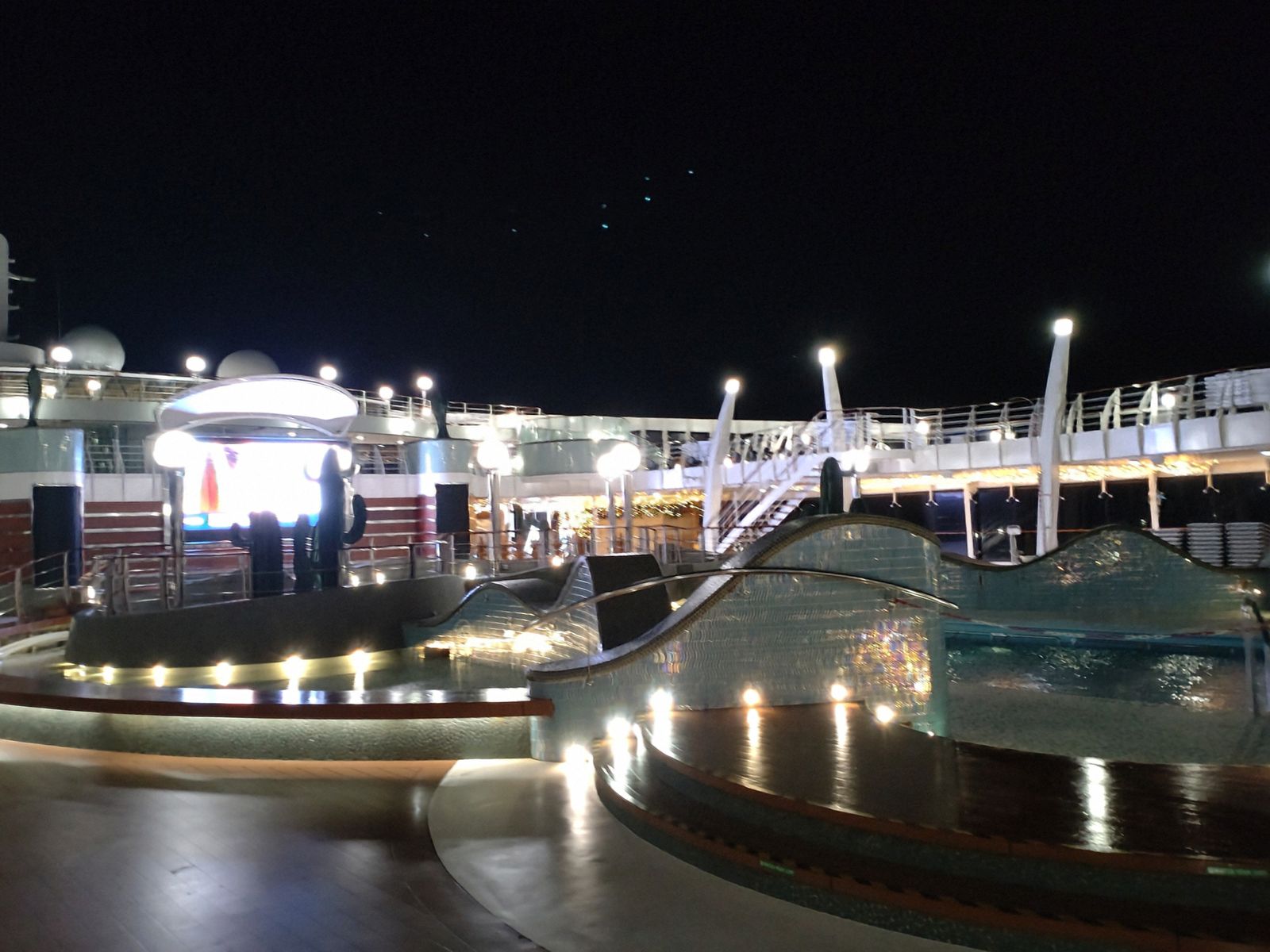 Hier noch ein nächtlicher Blick über das schöne Pooldeck.