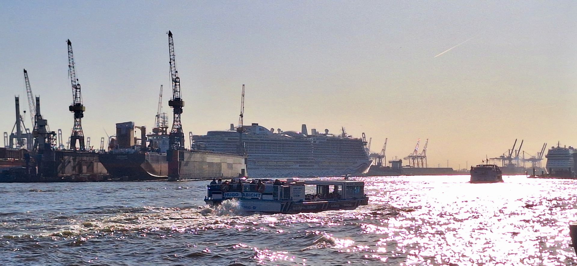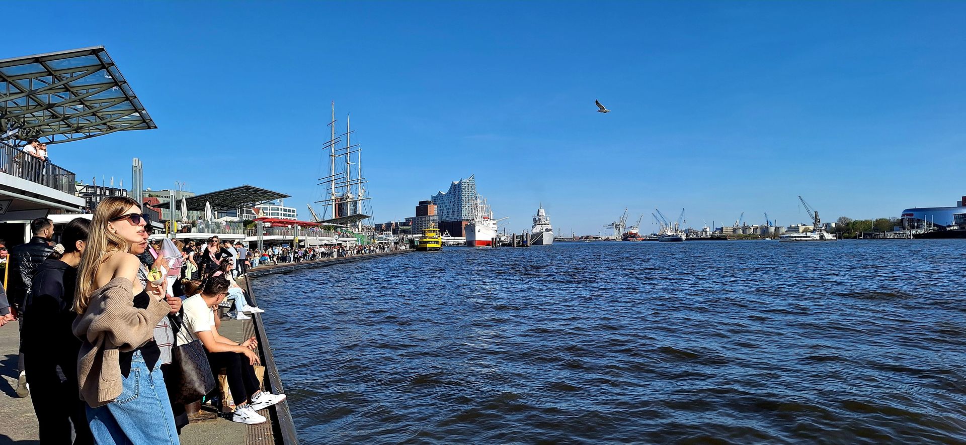 Wir sind jetzt immerhin an den Landungsbrücken. Bei einem Traumwetter!