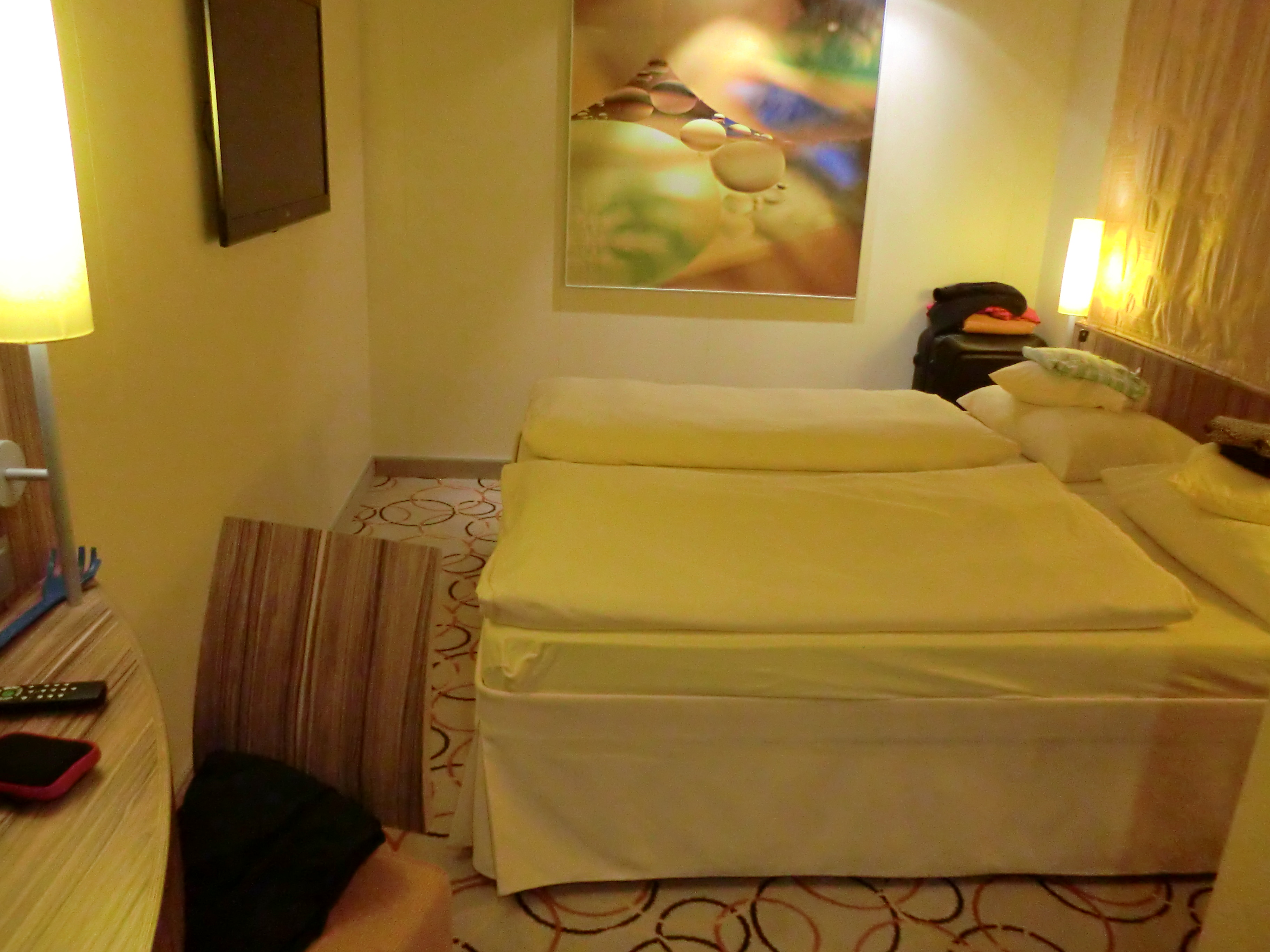 Ich fand die Kabine sehr angenehm. Es war sehr ruhig und auch das Schaukeln war nicht zu merken. Allerdings hatten wir auch nicht wirklich schlimmen Seegang.