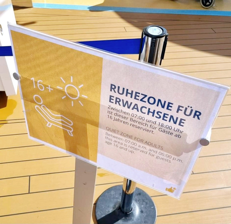 Wäre es nicht einfacher, den Liegenbereich auf Deck 19 am Bug zum kinderfreien Bereich zu erklären? Das ist eine geschlossene Fläche.