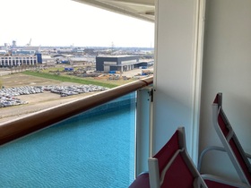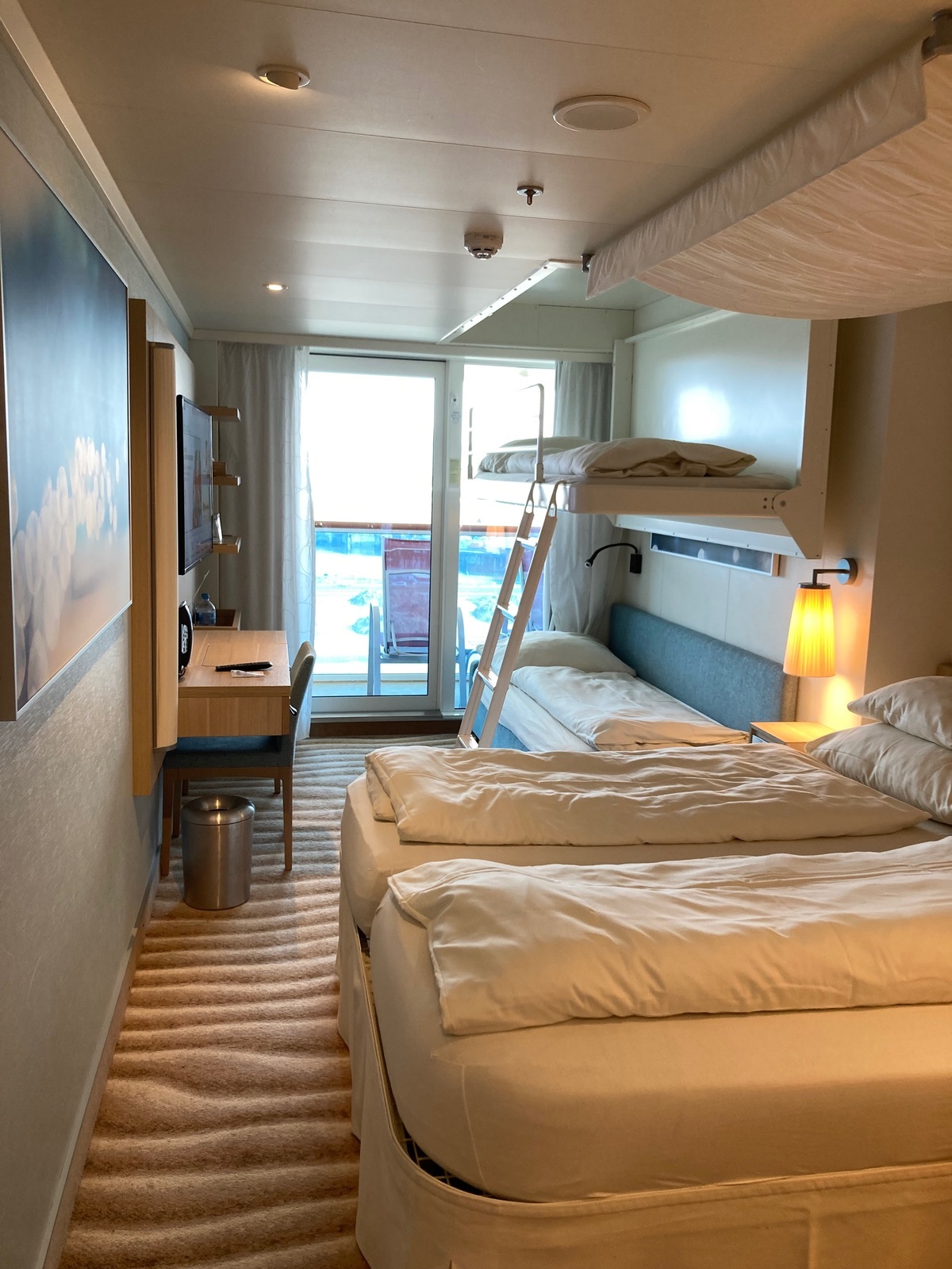 Es handelt sich um eine Balkonkabine Steuerbord recht weit hinten.