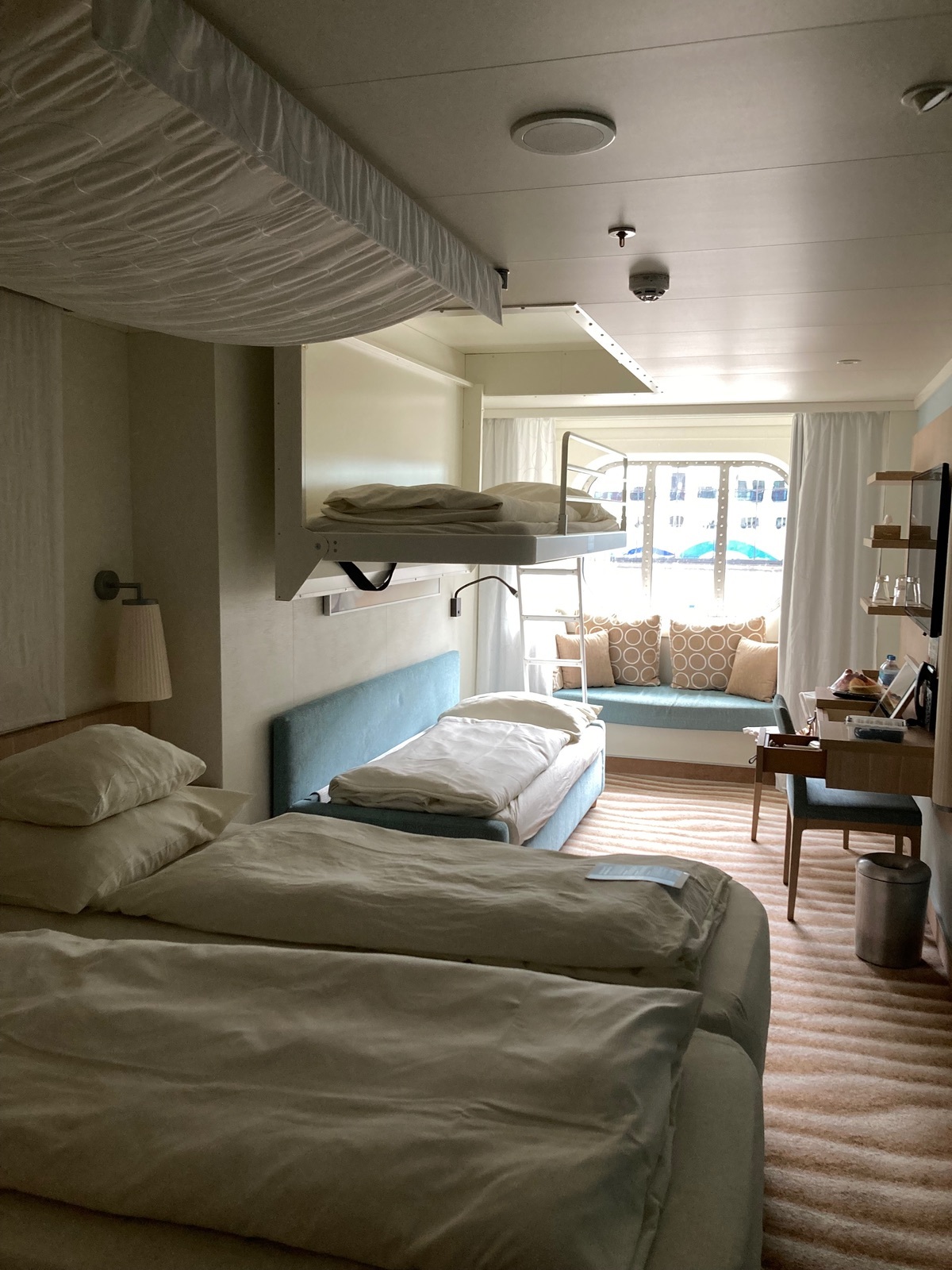 Wir haben diese schöne Meerblick-Kabine zu viert bewohnt.