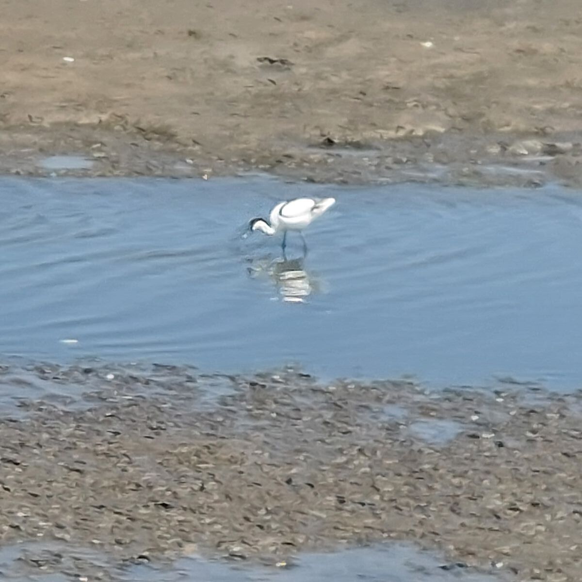 Lagune mit tausenden von Flamingos und Seevögeln