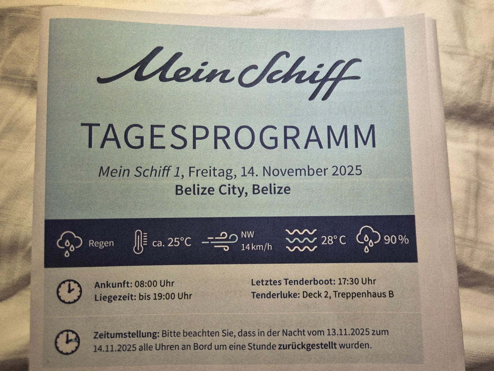 Mein Schiff 1 - Best of Mittelamerika, Tag 5, 14.11.2025, Belize City