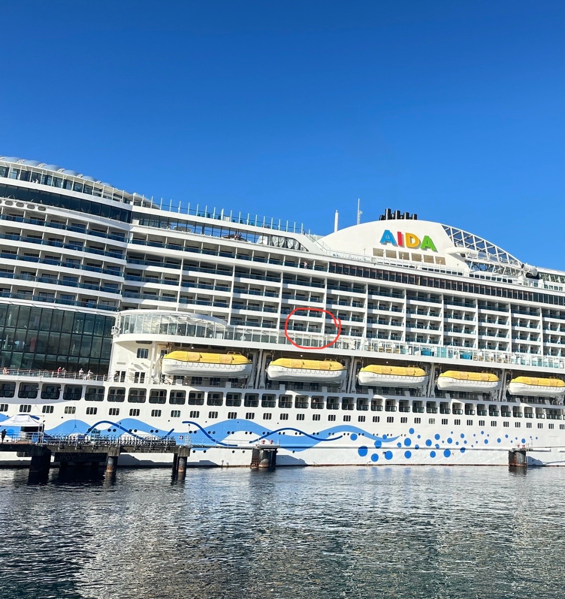 Mit Glasscheibe meinte ich die Scheibe von Deck 8, die als Schutz dient. Die Lage der Kabine hatte ich auch schon ähnlich erarbeitet.