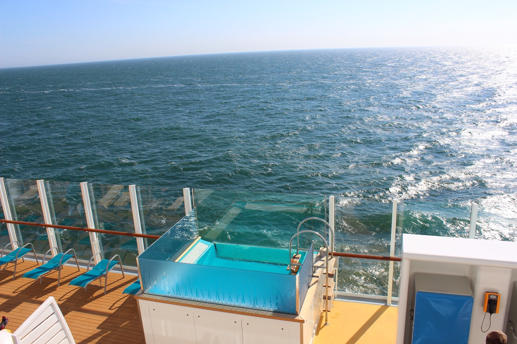 Hat man die Glasscheibe von Deck 8 im Blickfeld?