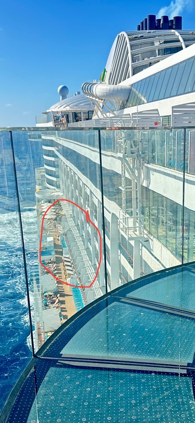 Laut Deckplan soll sie nicht direkt über den Pools und den Lanai Kabinen sein, sondern ein kleines Stück weiter Richtung Theatrium.