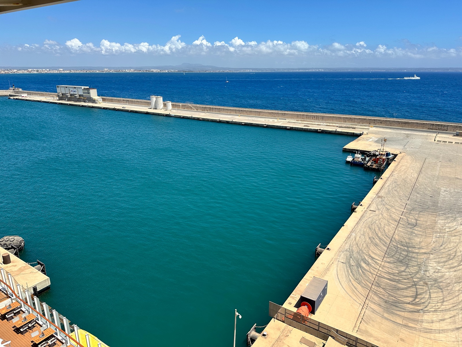 Wir haben die Kabine zugeteilt bekommen, sie ist direkt unter dem Fuego Restaurant. Dadurch gibt es einen großen Dachüberstand. Die Sicht ist dadurch zwar ein wenig eingeschränkt, aber, gerade wenn man nicht so groß ist, stört es eigentlich kaum. Wir haben den Dachüberstand sogar als positiv empfunden, da es auf dem Balkon (der Veranda) dadurch immer schön schattig und angenehm gewesen ist. Von dem Fuego selbst bekommt man sehr wenig mit. Manchmal hört man es ein wenig, wenn dort gerannt wird. Da die Öffnungszeiten dort aber sehr human sind, hat es uns nicht gestört. Auch hört man draußen ein wenig Geschirr geklappere vom Brauhaus, aber auch das war nicht allzu störend. Die Außenbeleuchtung führt nur an den Säulen entlang, diese waren nicht unmittelbar neben der Kabine, deshalb war die Beleuchtung nicht störend.
