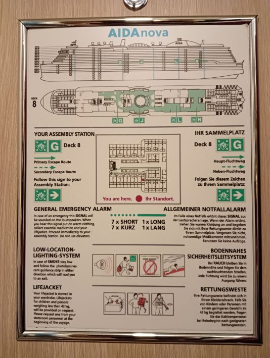 Der Sammelplatz befindet sich auf Deck 8 / G:
