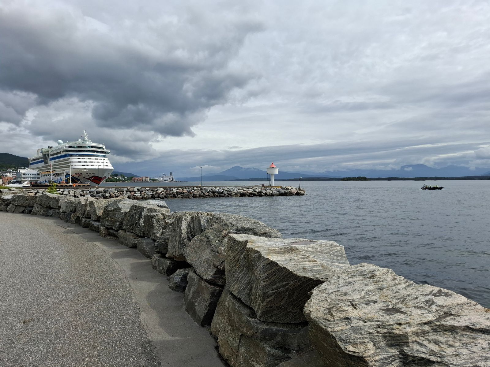 Die Stadt Molde für mich ganz okay. Klein ,viel ruhiger mit vielen hübschen Einfamilienhäusern. Was allgemein aufgefallen ist dass hier keine leer stehende Geschäfte gibt’s. Was machen die hier anders als bei uns in Deutschland? Direkt im Hafen werden Ausflüge angeboten.