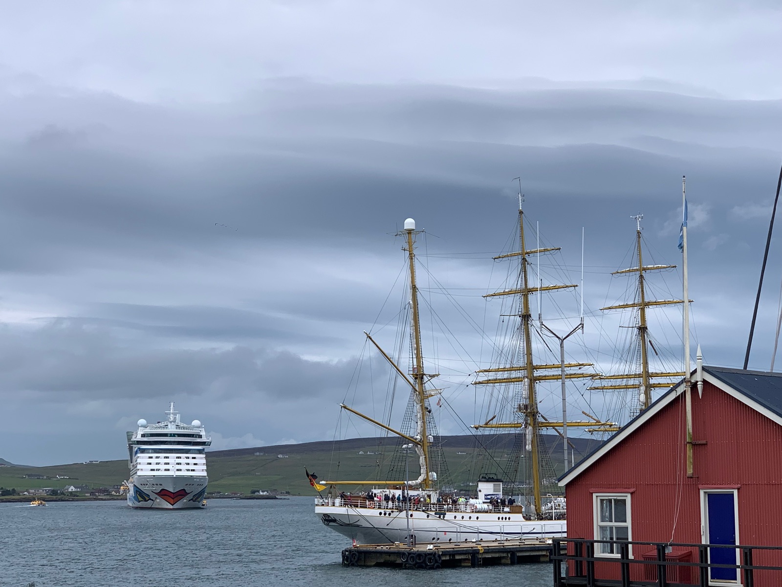 Wir sollten um 17 Uhr auslaufen und sind immer noch hier. Mein Koffer steht immer noch nicht in der Kabine sondern im Kellerraum wie viele andere auch. Wetter bombastisch und wenn wir noch weiter hier bleiben dann wird es mit dem Gin knapp obwohl die haben neu gebunkert