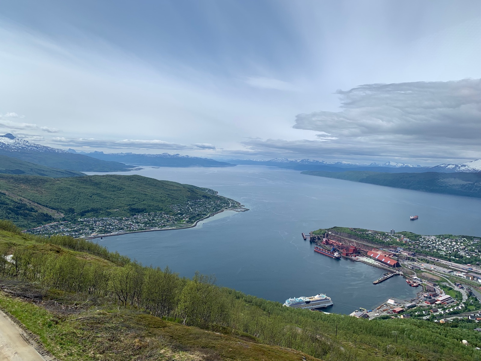 Sonnige Grüße aus Narvik (Blick vom Balkon Deck 8): 🌞