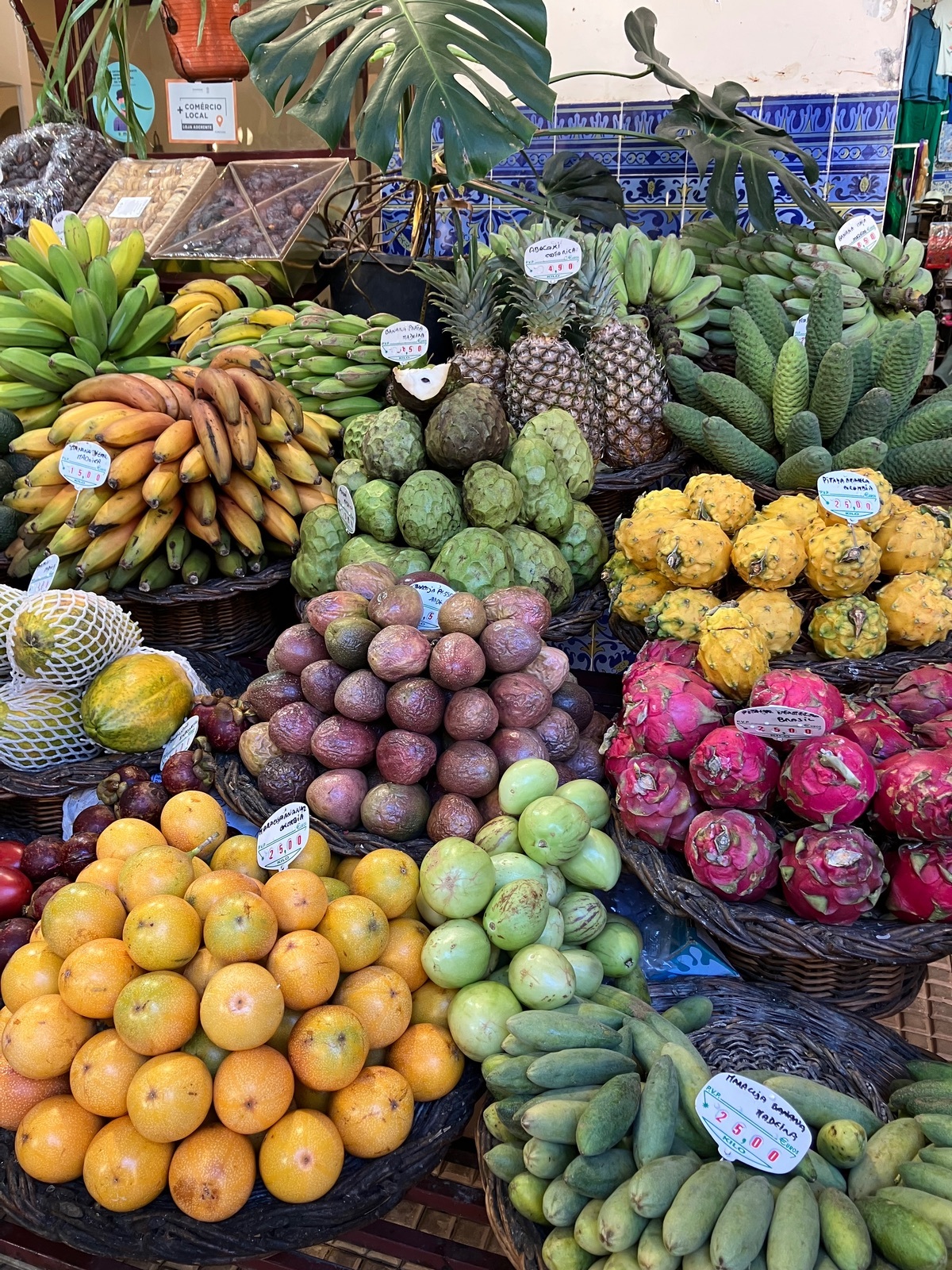 Zuerst ging es am Ronaldo-Museum vorbei zur Markthalle, wo wir 20 Minuten Aufenthalt hatten. Da wir aber heute erst um 11 Uhr angelegt haben und der Ausflug um 13 Uhr losging, wurde in der Fisch-Halle schon abgebaut. Die hätte ich am interessantesten gefunden. Naja, gerochen hat man sie noch. 😉😄 Aber auch sonst fand ich die Markthalle interessant, es gibt auf zwei Etagen Obst- und Gemüsestände,
