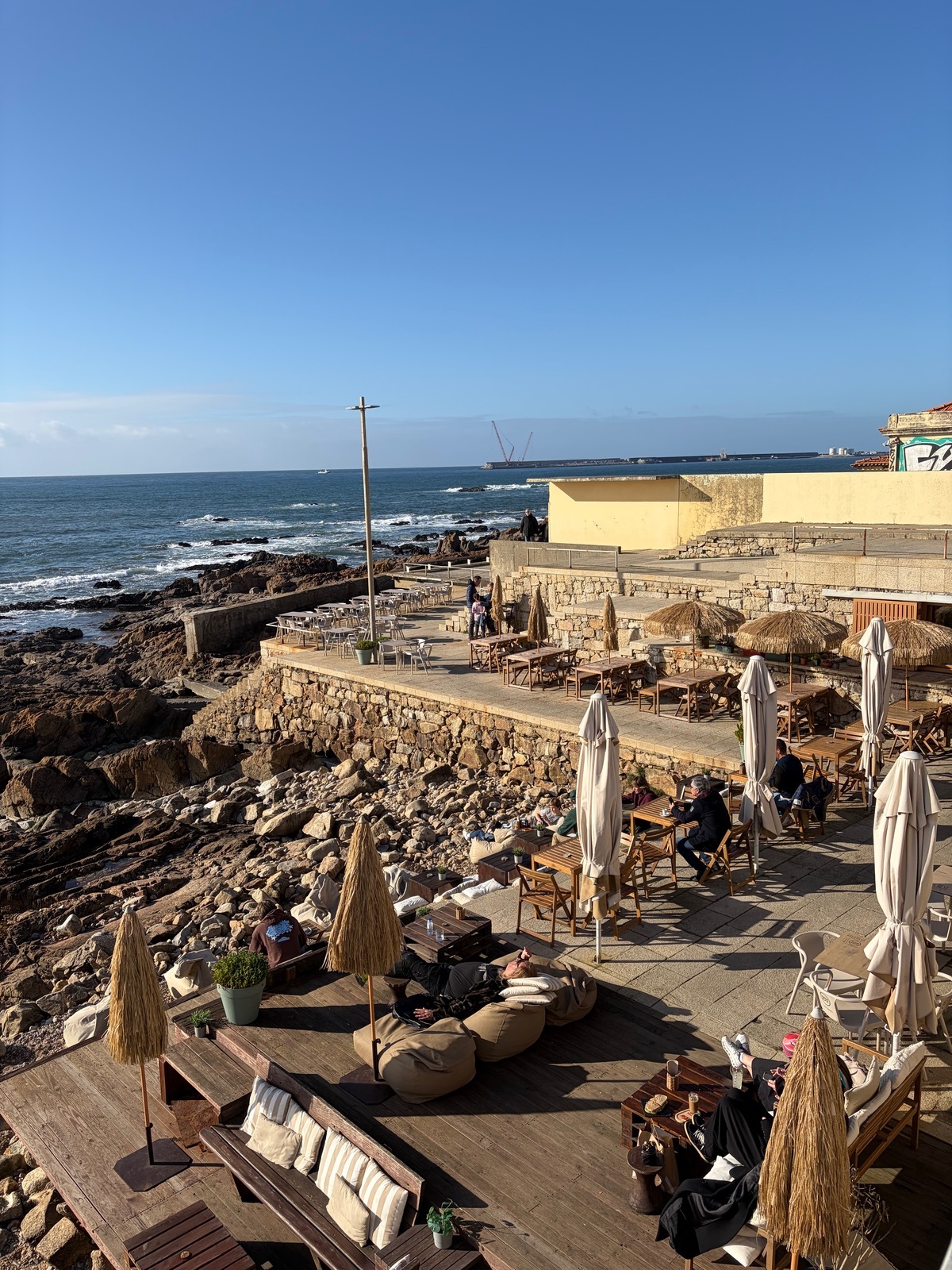 Die lange Promenade in Leixões wird fast niemals gebührend erwähnt…. Tolle Sicht auf das Meer und die Brandung. Plus sehr vieler Strandlokale, von denen kein einziges übervölkert ist 😅