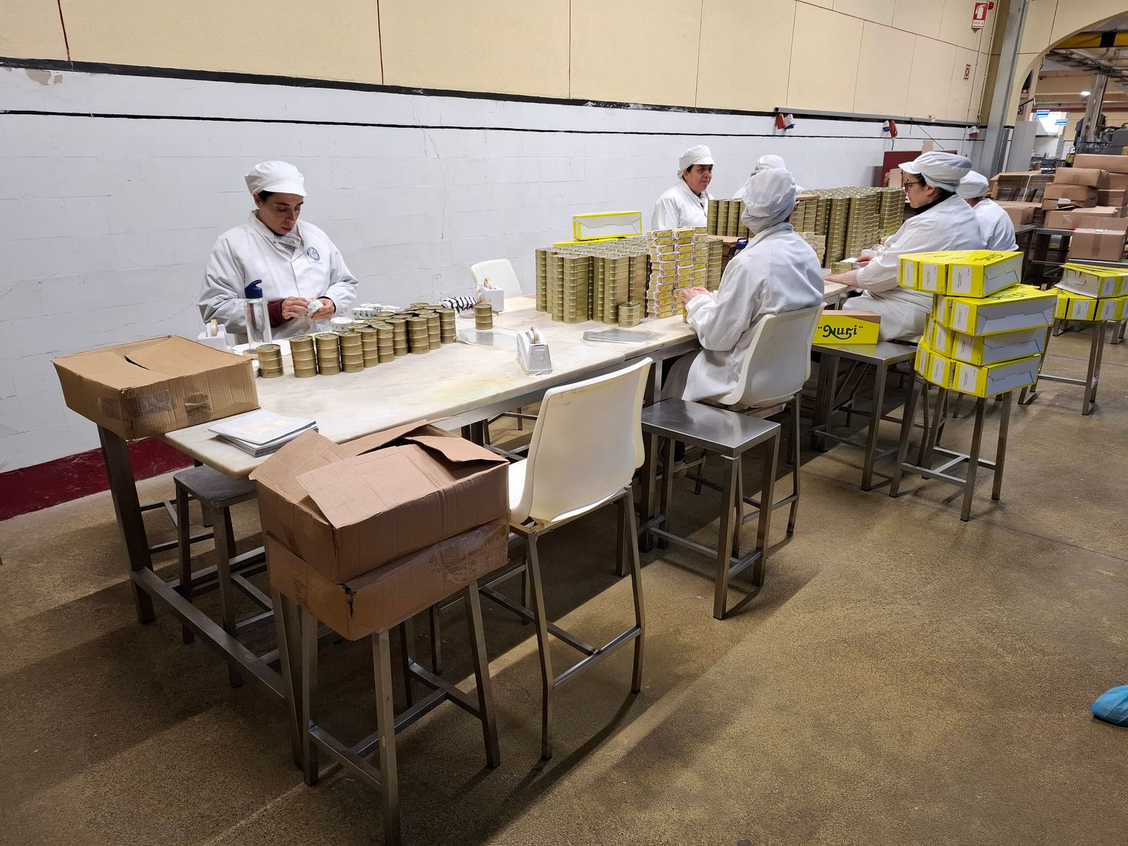 In der Fabrik wird noch fast alles per Hand gemacht. So wird z.Bsp. jede einzelne Dose in Papier eingewickelt (dauert pro Dose ca. 9 Sekunden).