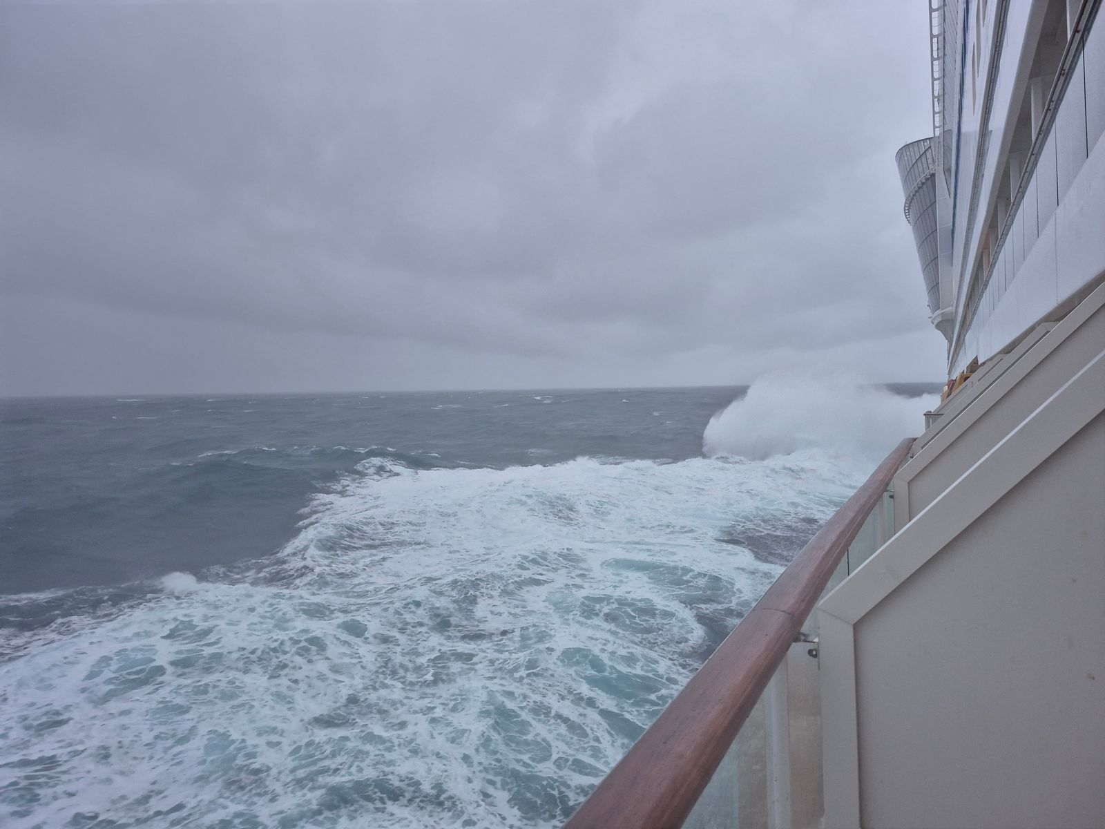 Hat sich aber schon wieder beruhigt. Morgen soll es noch mal heftig werden. Laut Kapitän sollen wir die Sachen vom Balkon reiholen. Der meint ja wohl nicht die Stühle und den Tisch :thumbsup:.