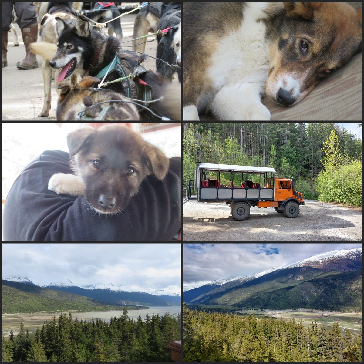 Zuerst ging es mit dem Bus zum Musher's Camp, welches bei Dyea, einer verlassenen Goldgräber Stadt liegt. Nach diesem Camp bringen die Musher im Sommer ihre Hunde, auf Grund der guten Temperaturbedingungen für die Hunde und die Fahrten mit den Touristen dienen für die Schlittenhunde als Auslastung sowie als Training für die Rennen im Winter.