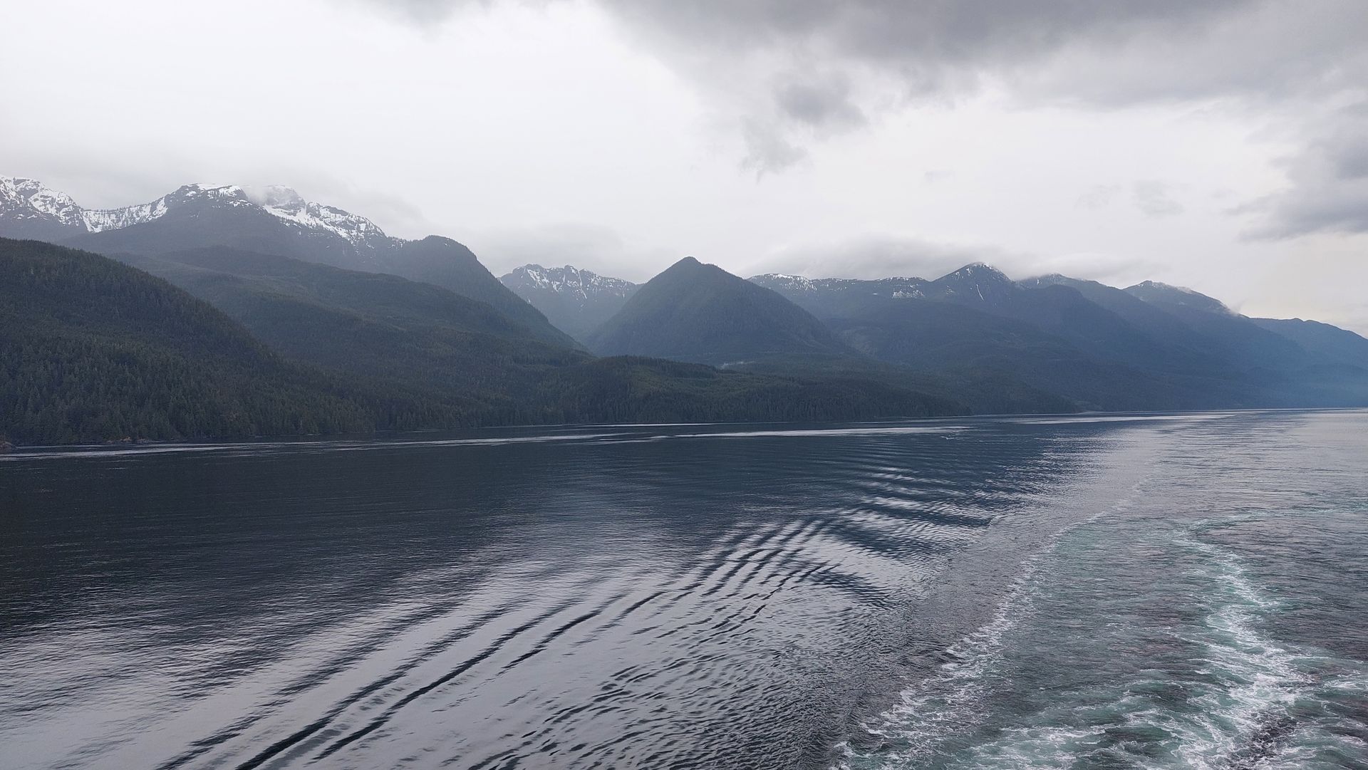 Gestern der Seetag fing mit Regen und Wind an. Es wurde aber besser als wir auf Höhe Vancouver Island kamen und dort schließlich in die Meerenge Johnstone Strait fuhren.