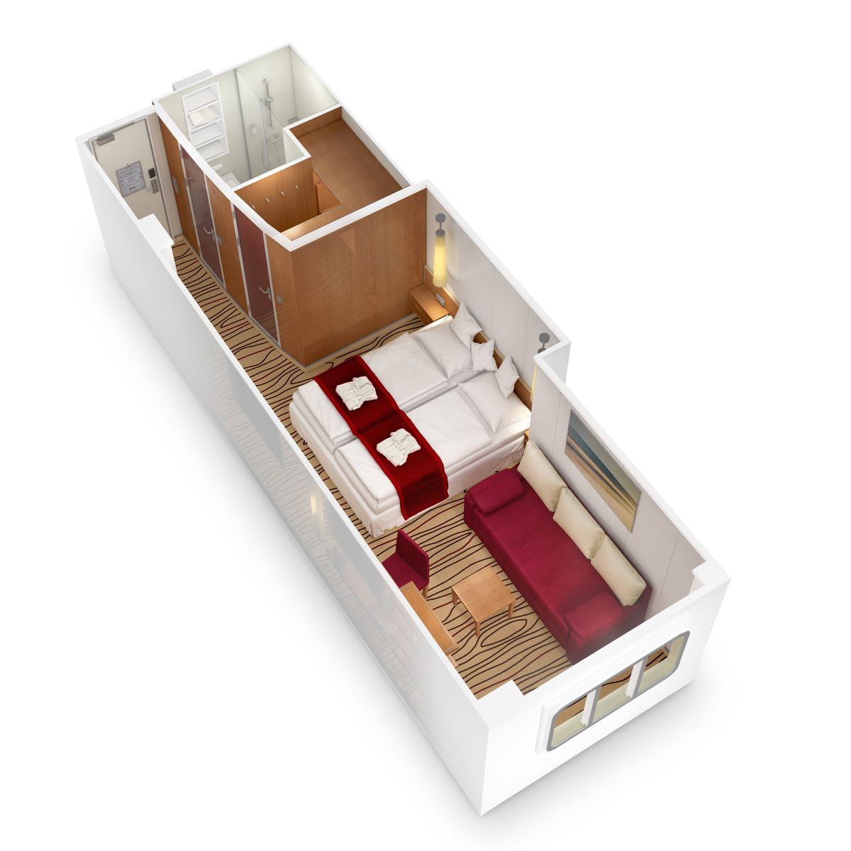 Vierbettkabine zwischen dem vorderen und mittleren Treppenhaus. Sehr ruhig und angenehm, würden wir jederzeit wieder buchen. Auch das An- und Ablegen hat man überhaupt nicht gehört.