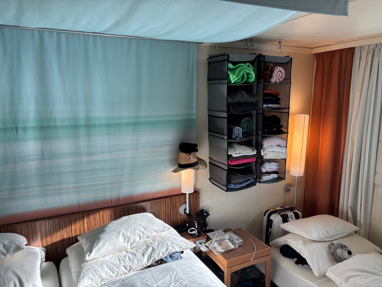 Wir müssen uns bedanken für die Info mit den Magnethaken und den Kisten zum aufhängen. Es wäre dann zu dritt ziemlich eng im Kleiderschrank geworden.