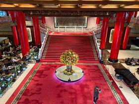 Wir speisten in einem Restaurant, das so groß wie ein Ballsaal war. Unter Kronleuchtern, die vermutlich schwerer waren als unser gesamtes Reisegepäck, gab es: