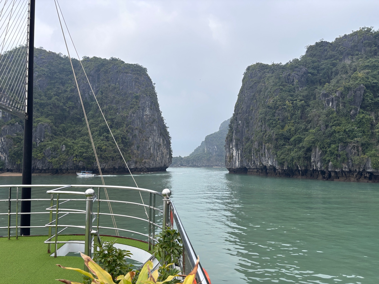 Den Vormittag haben wir in der spektakulären Halong-Bucht verbracht.