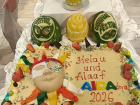 • Büttenrede & Jubel: Zwischen den Pointen gab es was zu feiern: Unsere Hoteldirektorin beging ihr 15-jähriges AIDA-Jubiläum. Hut ab! Wer es so lange mit uns Verrückten aushält, verdient eigentlich einen Orden aus purem Gold (oder zumindest einen lebenslangen Vorrat an Cocktails).