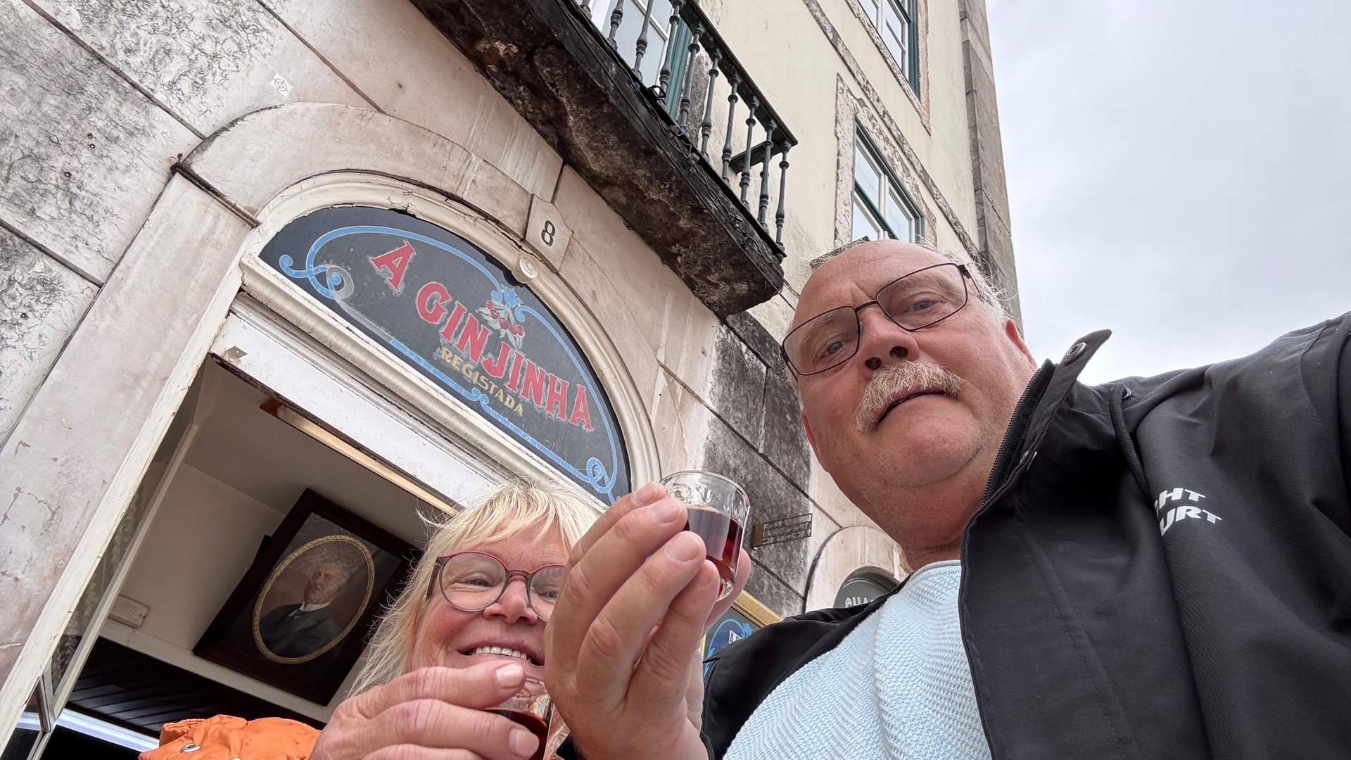 In Lissabon wird der traditionelle Kirschlikör Ginjinha (oder einfach Ginja) meist in spezialisierten, historischen Stehbars serviert.Der Weg führt uns noch weiter um ein Pastéis de Nata mit einem Espresso zu genießen. Bei kühlen Regenschauern gehen wir jetzt zurück zum Schiff.
