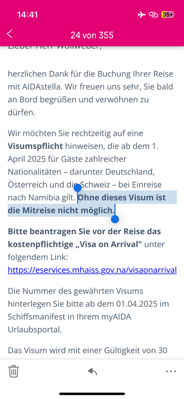Die Nachricht ist veraltet. AIDA bekommt es mal wieder nicht hin alle zeitnah neu zu informieren. Ich und einige andere haben mit AIDA gesprochen. Es reicht das Visum vor Ort zu beantragen.