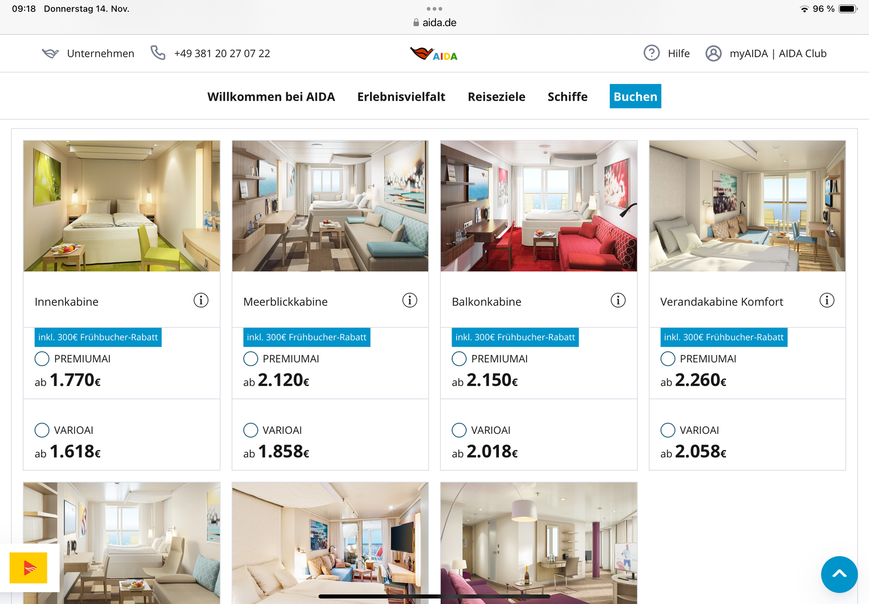 Ich werd verrückt....hier scheint wohl jemand von AIDA mitzulesen. Die ganzen Tage bis vorhin (ca 8:30) gab es das nicht. Ist aber auch egal, weil Vario jetzt genauso teuer wie vor ca einer Stunde Premium war ![]()