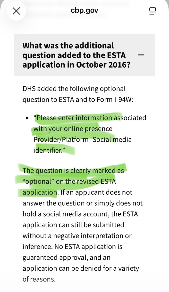 Habe auch meinen Esta Antrag für meine Tour mit MS1 im September 26 beantragt (mittlerweile der dritte), bevor er 40$ kostet. Neu war für mich diesmal, dass man den Pass hochladen musste und anschließend noch ein "Selfie" Portrait. Und, dass nun nach den Social Media Plattformen, in denen man aktiv ist, gefragt wurde. Ales andere wie gehabt. Genehmigung dauerte 1 Stunde.