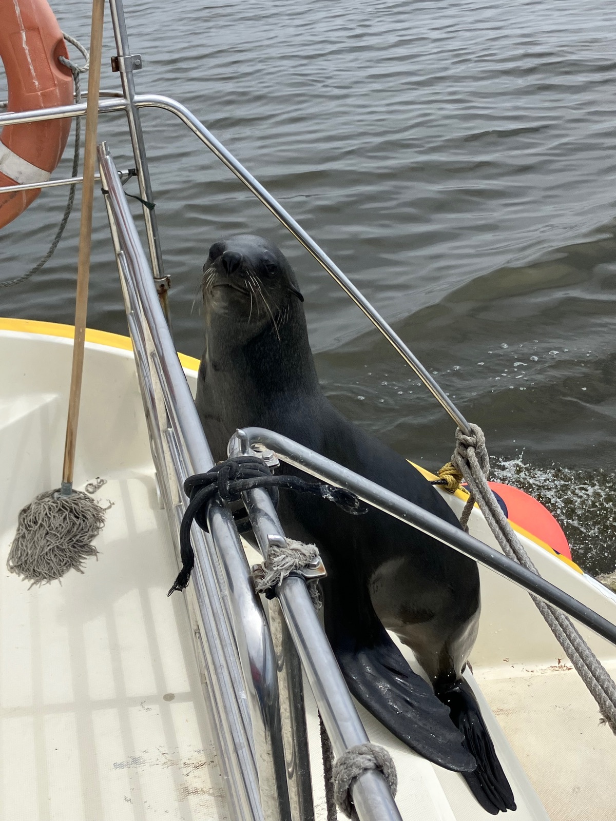 Zum Schluss, als wir schon fast wieder im Hafen waren, kam noch Besuch an Bord.