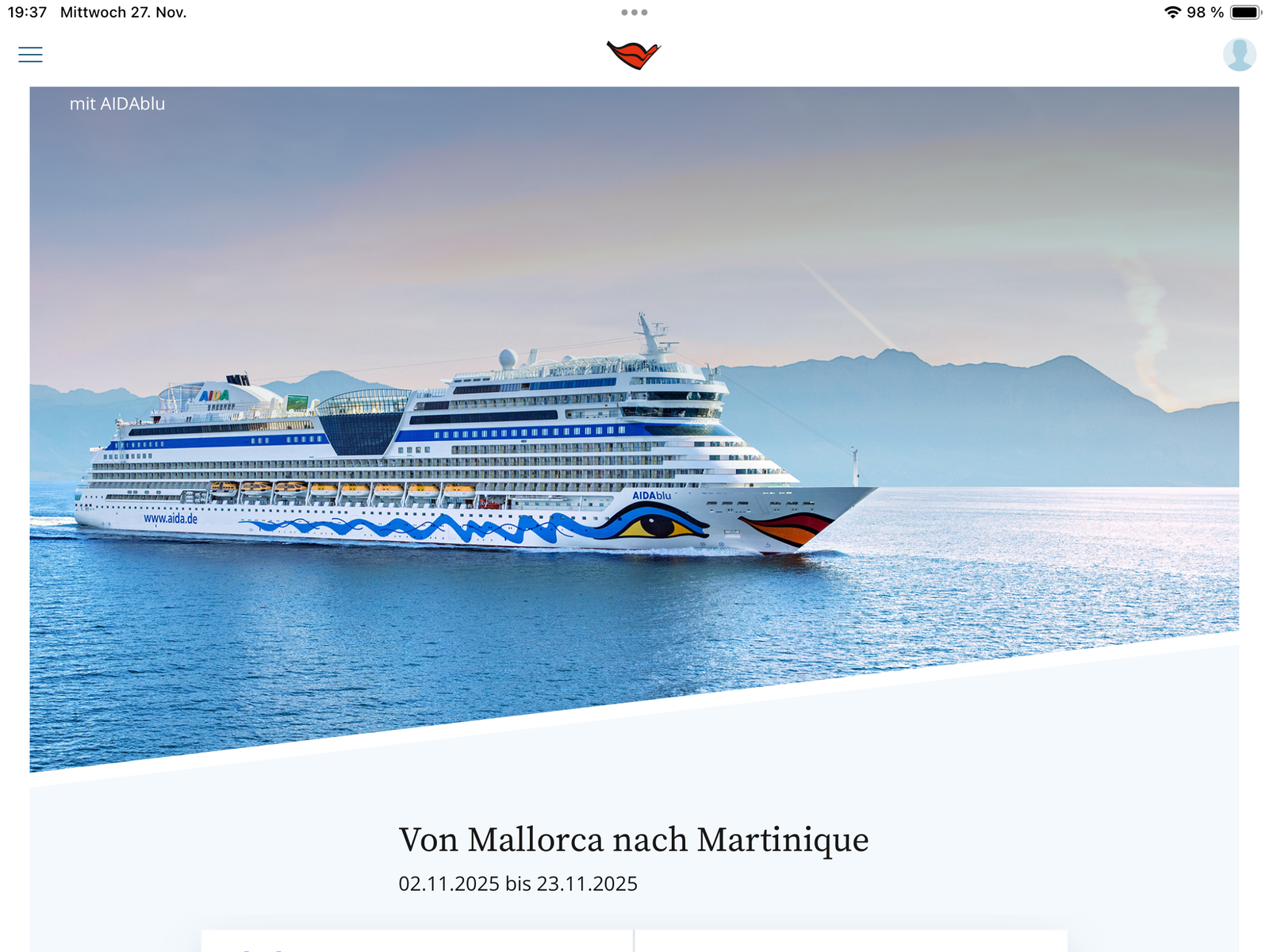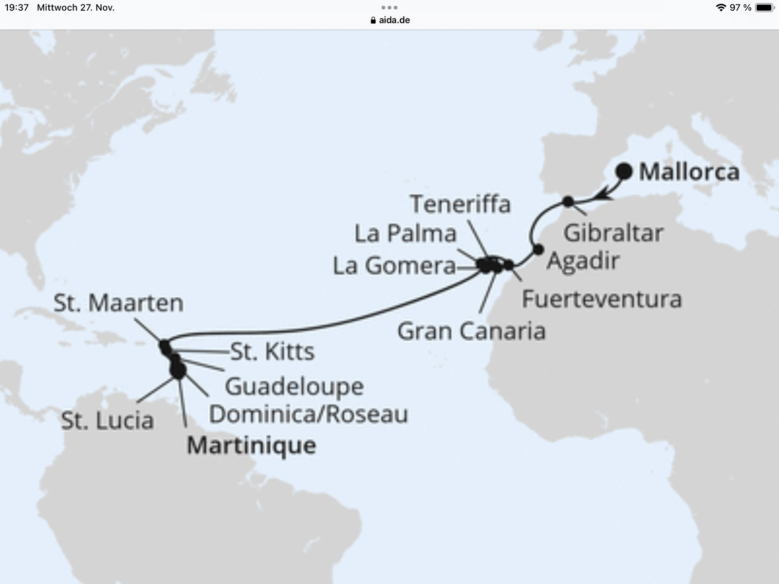ich würde gerne meine gebuchte Kreuzfahrt mit der AIDAblu vom 2.11.-23.11.25 verkaufen. Ich habe bereits eine Anzahlung geleistet. Gebucht ist eine Innenkabine für zwei Erwachsene + ein Baby, im Premium Tarif. Die Route geht von Mallorca über die Kanaren bis in die Karibik. Gesamtpreis 4900€ incl Flüge ab Frankfurt. Zur Zeit kostet die Reise 6250€. Die Kabine( 4361) ist Barrierefrei und etwas größer als eine ‚normale‘ Innenkabine. Habe vor zwei Wochen auf der Luna die Fernwehexperten nach der Möglichkeit gefragt: Laut ihrer Aussage, wäre eine Namensänderung kein Problem. Kosten ca 100€ p.P.