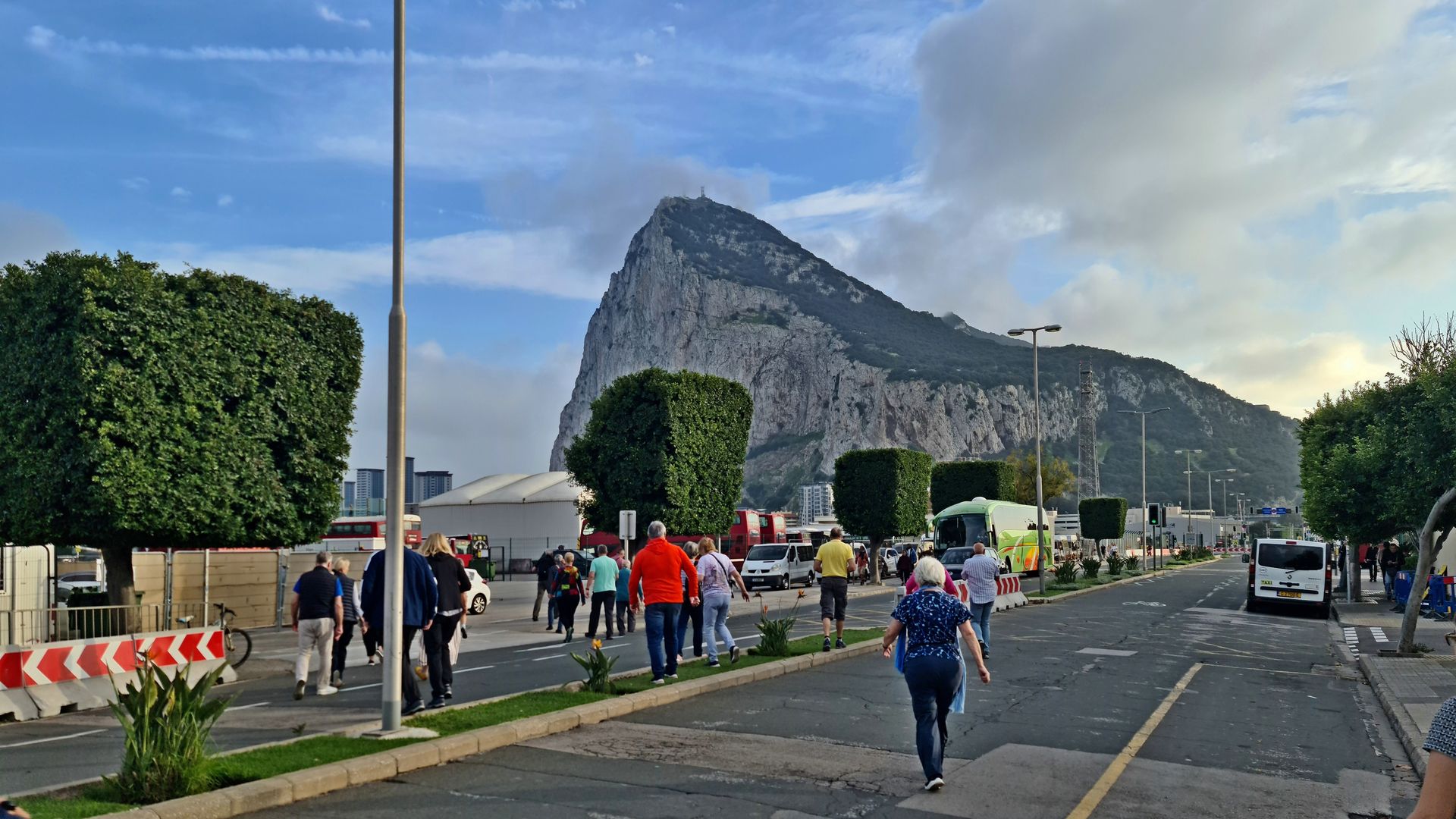 Zu Fuss ging es wegen dem " Brexit" über den Grenzübergang und wir bestiegen dann auf spanischer Seite einen grossen Reisebus.