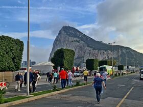 Zu Fuss ging es wegen dem " Brexit" über den Grenzübergang und wir bestiegen dann auf spanischer Seite einen grossen Reisebus.