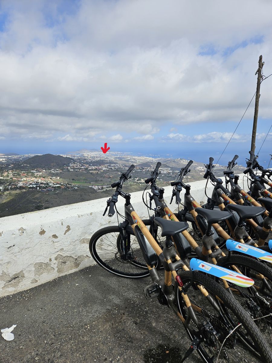 Um es vorwegzunehmen, natürlich arbeitet man sich an den Höhenmetern ab. Aber ich fand es wirklich OK. Mit den E-Bikes war es eigentlich zu keinem Zeitpunkt ein Problem. Großes Plus dieser Tour ist, dass sich die Höhenmeter wirklich auf mehrere Anstiege verteilen mit dem Höhepunkt natürlich am Pico de Bandama, aber auch da würde ich sagen, dann es nicht mehr als 15 Minuten am Stück (auch nicht zu steil) bergauf ging. In den beiden Gruppen mit den je 15 Leuten kamen alle gut durch. Auch die Anzahl der Höhenmeter von AIDA war wohl etwas hochgegriffen. Laut meiner Garmin, auf die ich mich in Sachen Genauigkeit eigentlich immer gut verlassen kann, waren es am Ende der Tour "nur" 781 Höhenmeter Anstieg und knappe 46 km. Denke auch, dass das realistisch ist, wenn man bedenkt, dass der höchste Punkt der Tour bei 570 m liegt, auch wenn es natürlich auch mal auf und ab geht.