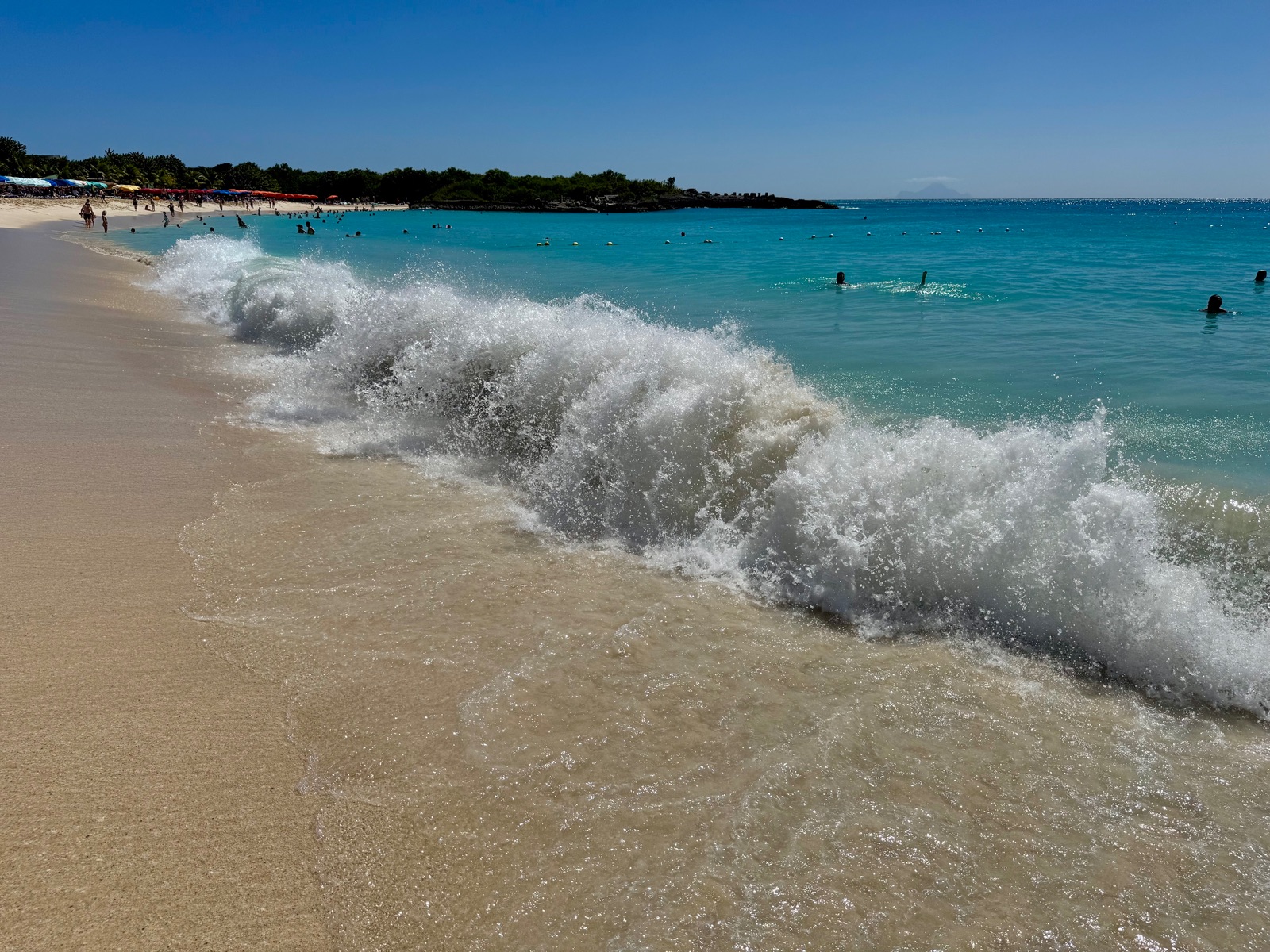 Auf unserer Reise mit der MS 2 entschieden wir uns auf St Maarten für eine E bike Tour . Auf St Maarten darf ein Fahrradguide mit max 10 Gästen fahren , so dass wir mit mehrere Gruppen a 10 Gäste zu unterschiedlichen Startzeiten radelten . Stationen waren Strandpromenade , Grenze Holland Frankreich , Fort Louis , Marigot mit Freizeit , Mullet Beach mit 2 Stunden Badepause , Maho Beach . Außerdem gabs fotostopps und Aussichtspunkte mit kurzen Stopps . Wir waren gut 7 Stunden unterwegs und es waren knapp 40 km mit bissel bergauf und bergab . Schöne Fahhradtour trotz manchmal abenteuerlichem Verkehr