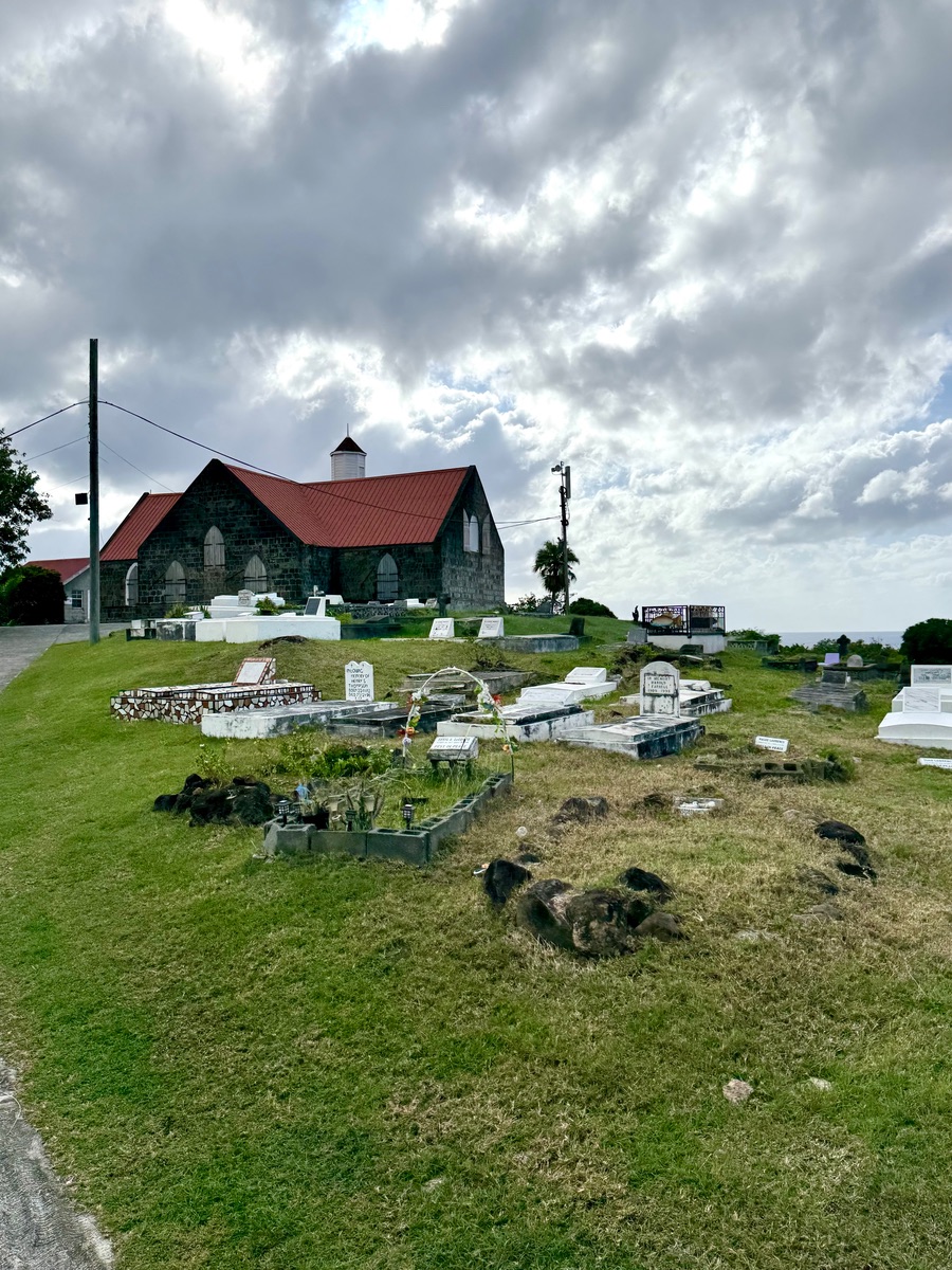 Wir haben in St Kitts den Ausflug ein Tag auf Nevis gemacht . Wir wurden am Schiff mit dem Schnellboot abgeholt , waren eine Gruppe von 20 Gästen und fuhren ca 45 min hinüber auf die Insel Nevis . Dort holte uns ein offener Jeepbus ab und fuhr uns in den botanischen Garten . Dieser ist in Privatbesitz und wird sehr liebevoll und mit viel herzblut von einer sehr symphatischen Dame geführt . Wir bekamen eine einstündige , englischsprachige Führung , die sehr kurzweilig und interessant war . Leider war hier die Stunde eigentlich zu kurz , wir schafften nicht den ganzen Garten . Dafür hätte es mindestens zwei Stunden gebraucht . Weiter ging’s jetzt zum Strand , hier gabs für jedes Paar zwei überdachte Liegen , ein Mittagessen nach Wahl aus der Karte und zwei Getränke . Wir hatten drei