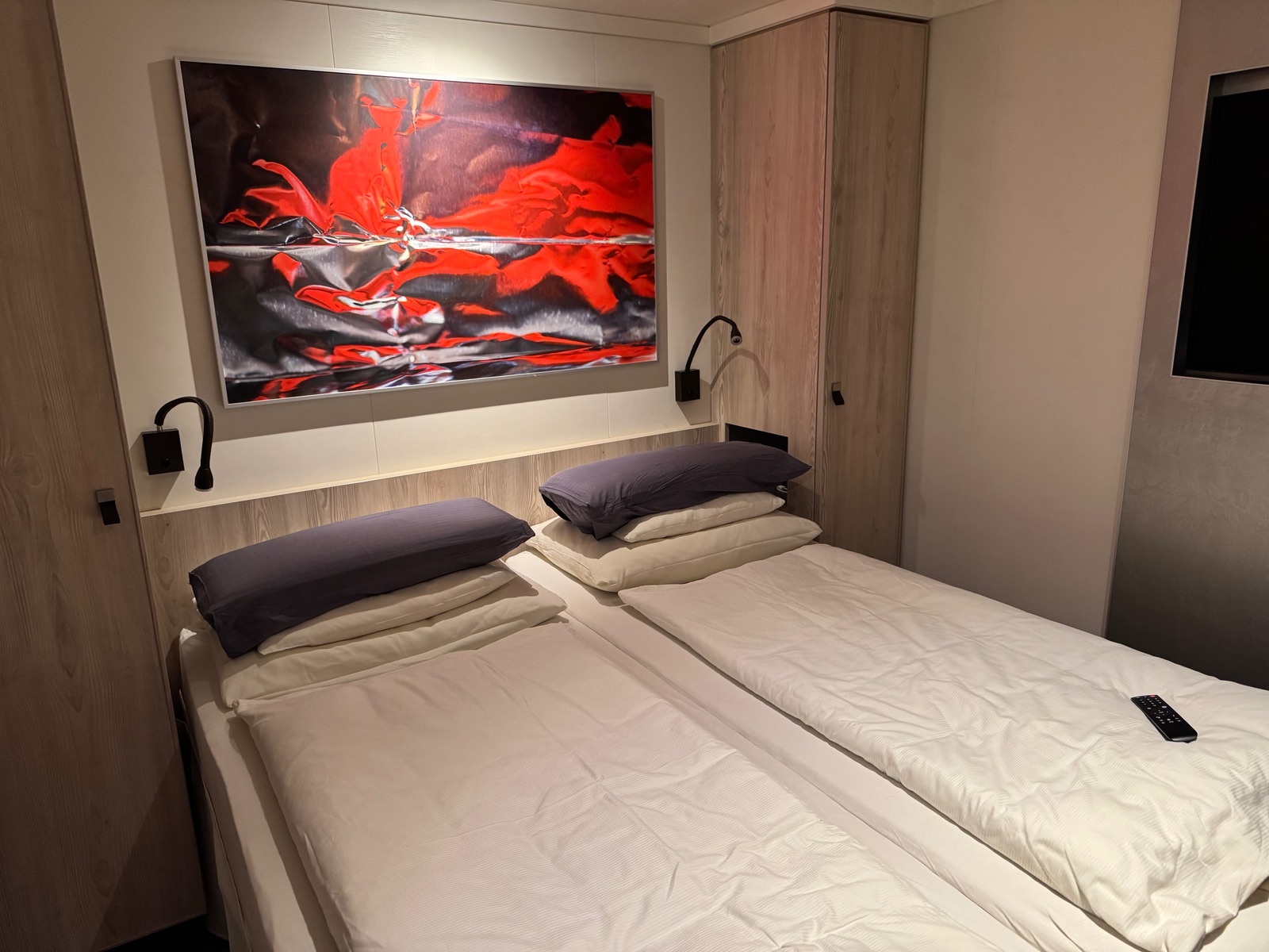 Wir haben die Kabine als Paar für eine Woche Südnorwegen im März genutzt und waren vom Stauraum angenehm überrascht. Trotz viel zu viel Kleidung war noch genug Platz in den Schränken vorhanden.